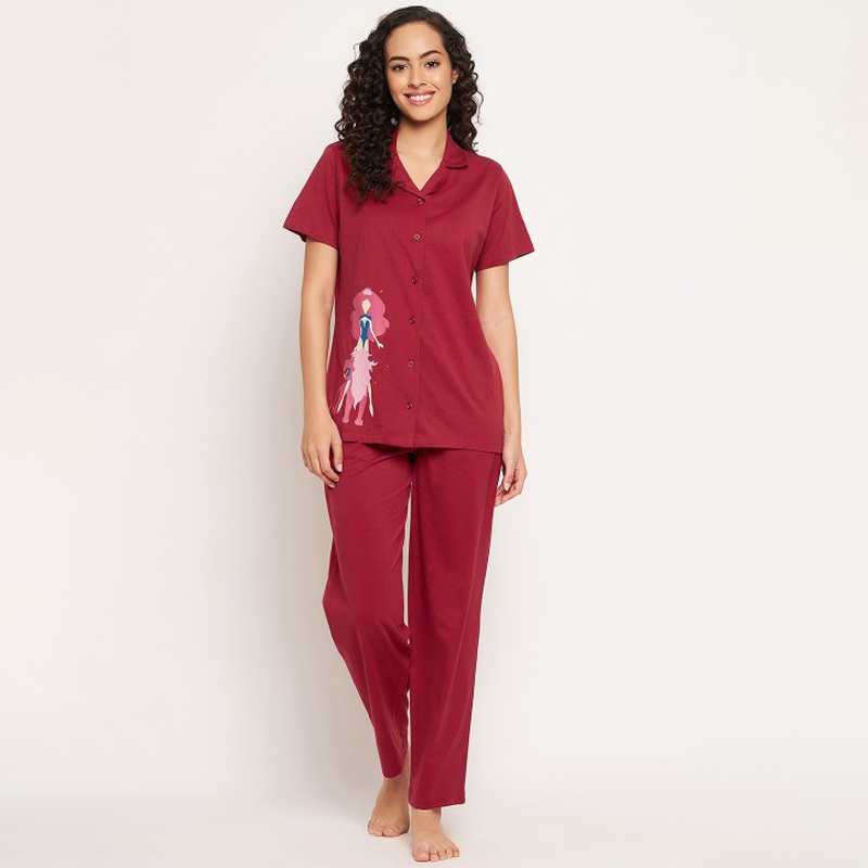Women Maroon Printed Night suit
