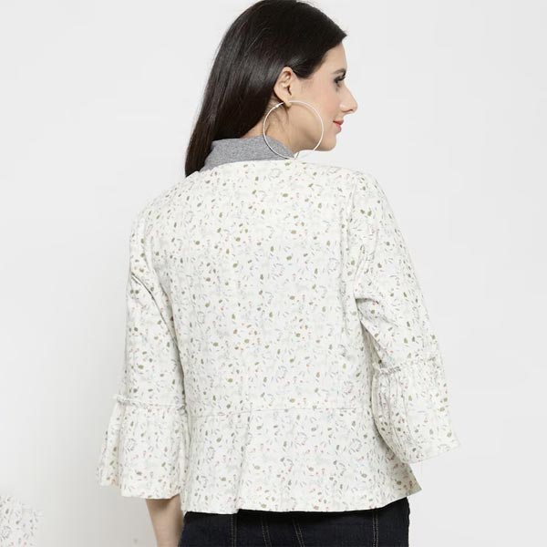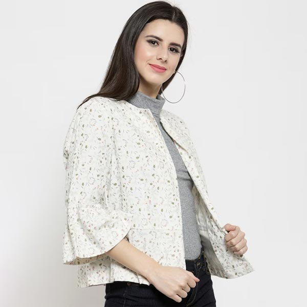 Women Off White Printed Open Front Shrug